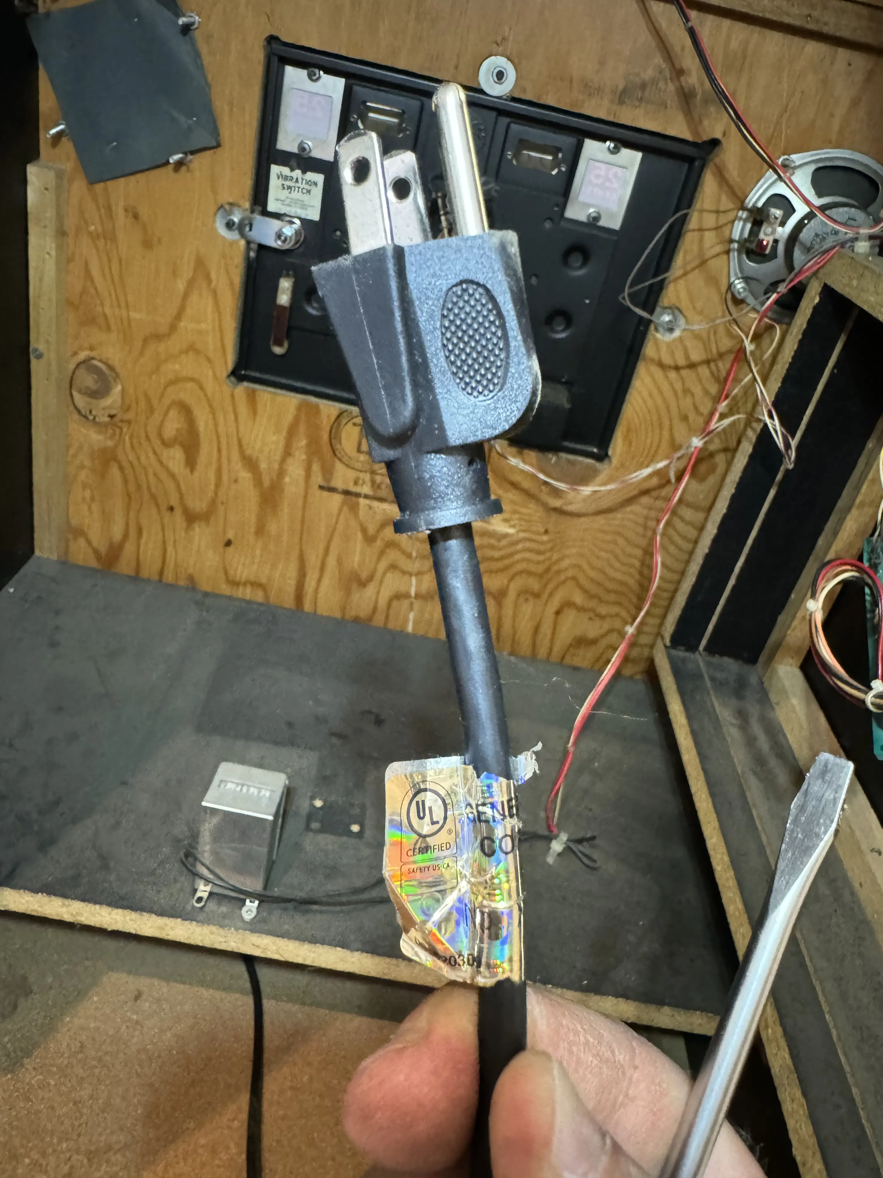Após a instalação, foi possível perceber por que a PCB não ficava segura dentro do gabinete: havia uma separação de uma das ripas de madeira, possivelmente indicando que a peça trabalhou e baixou, deixando de oferecer sustentação do trilho que mantinha a placa no lugar.
