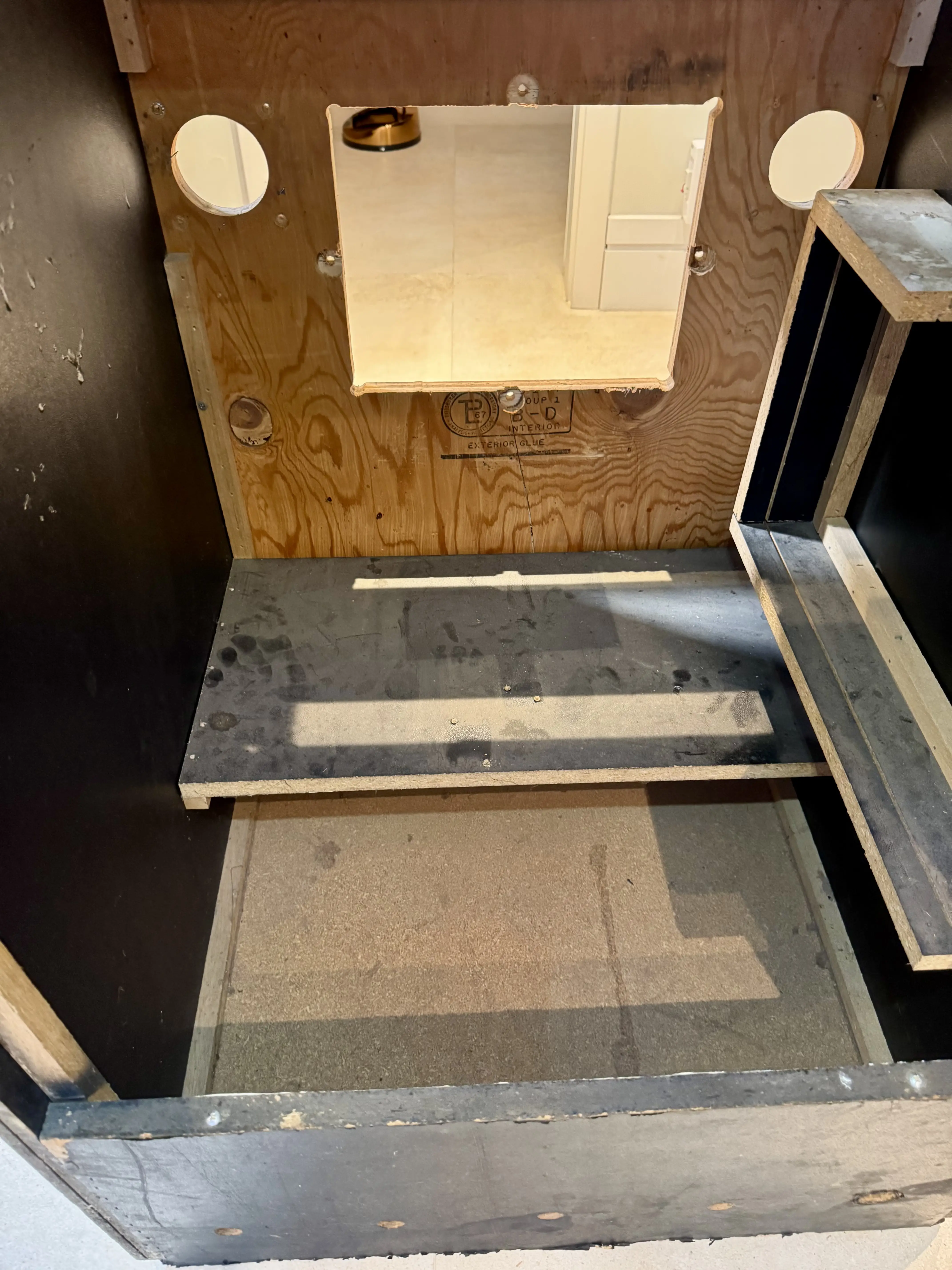 O gabinete do arcade Circus, da Exidy, necessitava de um certo trabalho de marcenaria, especialmente para consertar o suporte da placa-mãe, mas também para permitir a restauração da side art. E, para isso, uma escolha teria que ser feita.