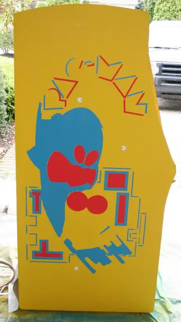 O Circus, originalmente, tem sua arte lateral realizada por meio da técnica de stencil, ou grafiti, que consiste na aplicação de tinta spray através de máscaras. Há um bom artigo mostrando essa técnica no blog de Jeff Rothe, um restaurador de arcades. Eu tirei as fotos abaixo desse artigo: