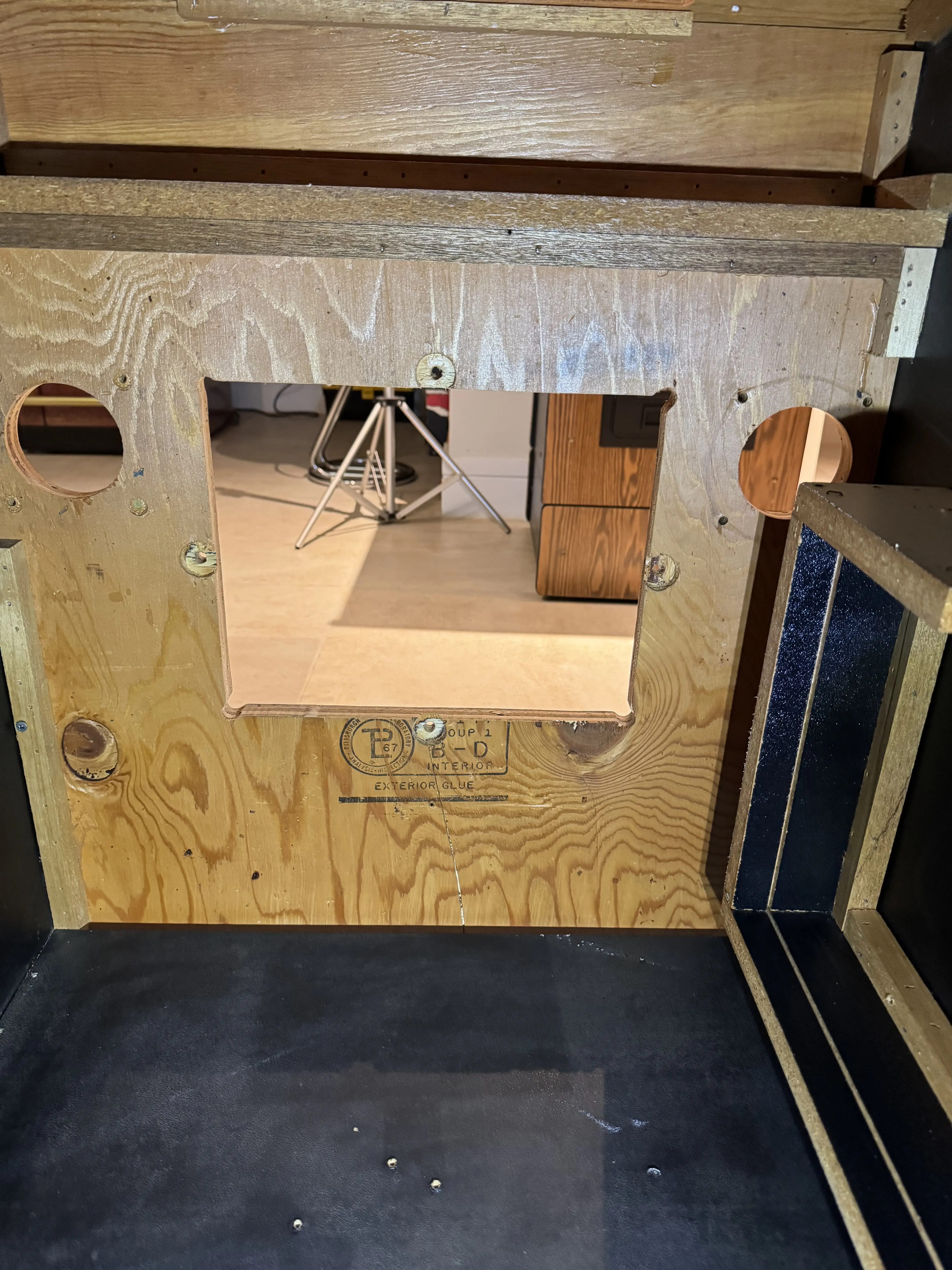 O trabalho de marcenaria realizado no gabinete do arcade Circus, da Exidy, foi completo. Basicamente, todas as lâminas de madeira e adesivos foram eliminados para que a nova arte fosse aplicada. As bordas que apresentavam falhas foram retocadas com uma massa composta por serragem e cola.