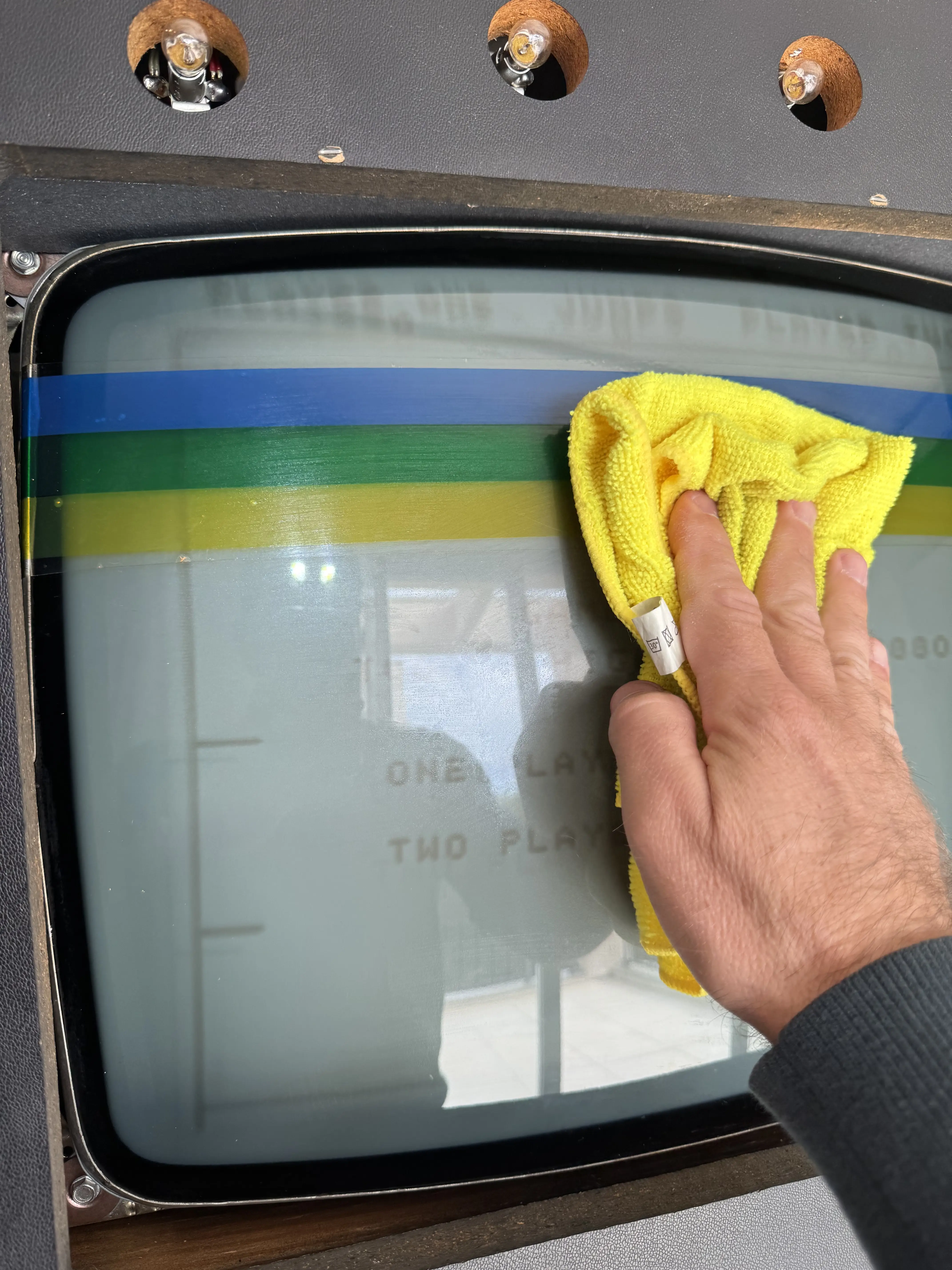 Uma limpeza também na superfície do tubo e dos overlays de cores, e o marquee está pronto para ser instalado. Lembrando que, no Circus, ele pode ser inserido ou retirado diretamente pela frente do gabinete, bastando dobrá-lo, o que é outro aspecto muito estranho.