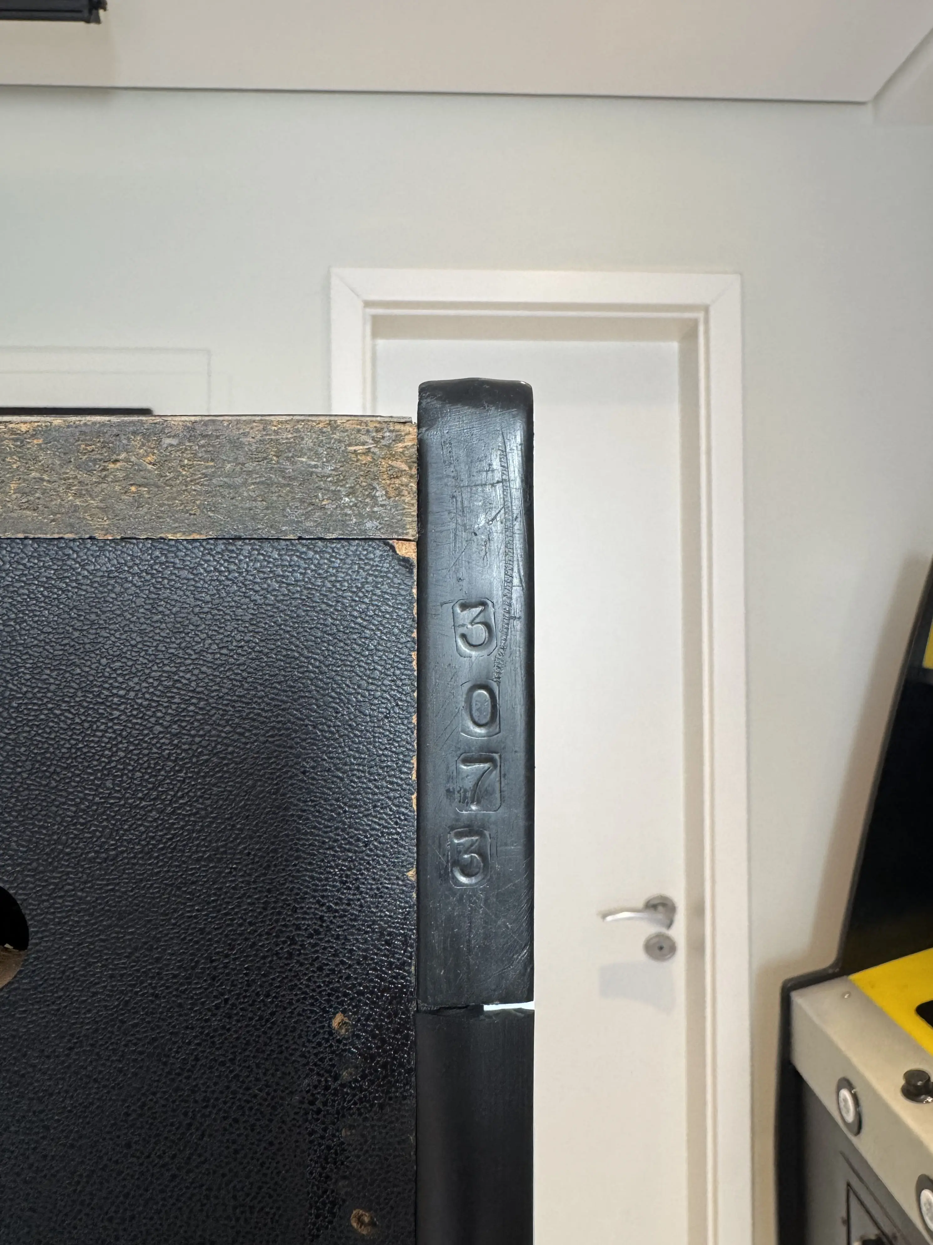 A coin door não foi restaurada. Seu aspecto é bom, com algum desgaste, e a opção foi de conservar a textura da pintura original, que dificilmente seria replicada em um processo de restauração.