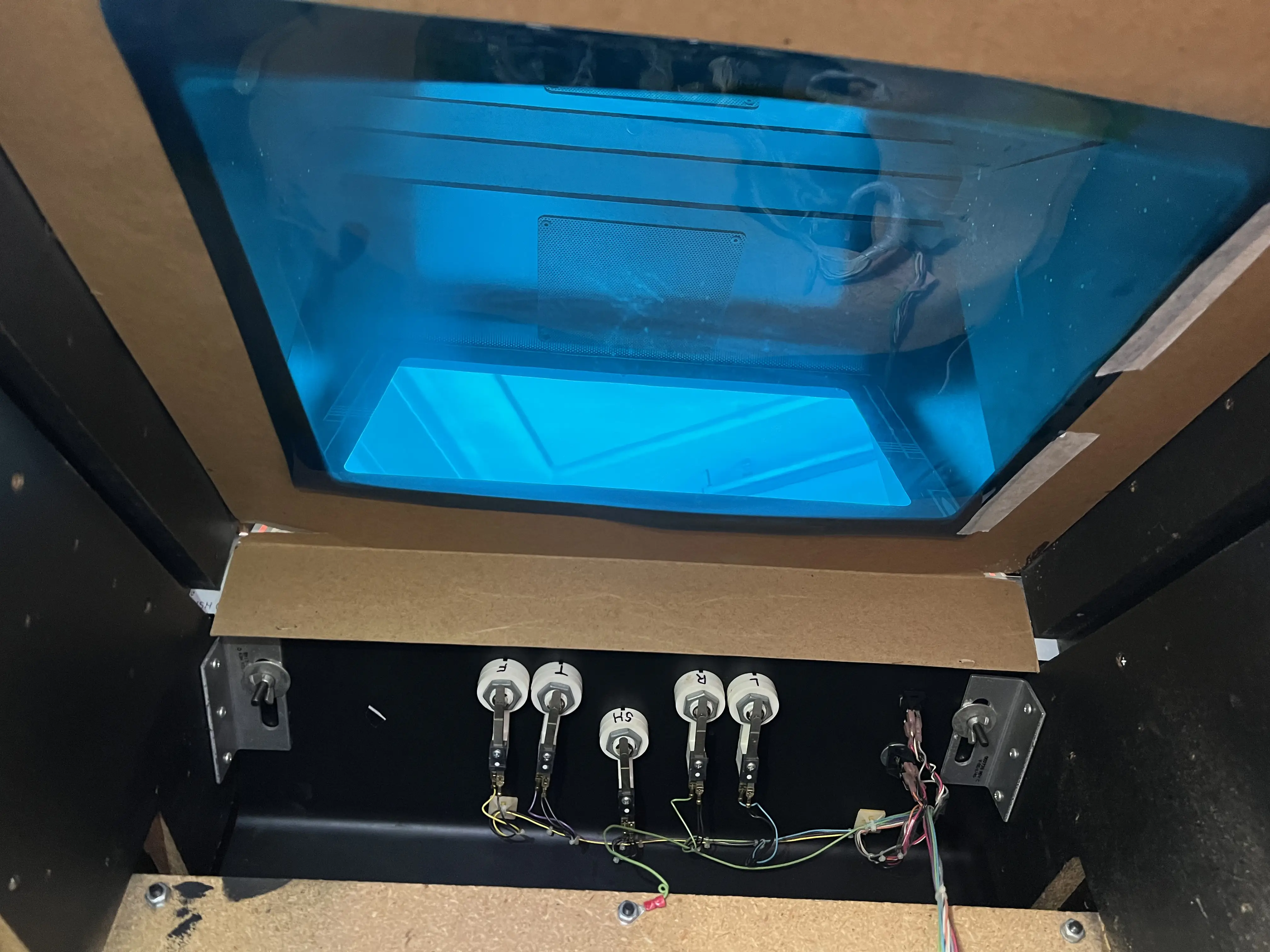 Enquanto alguns overlays são posicionados sobre o tubo do monitor, no caso do Asteroids Deluxe ele é fixado diretamente na moldura do playfield: