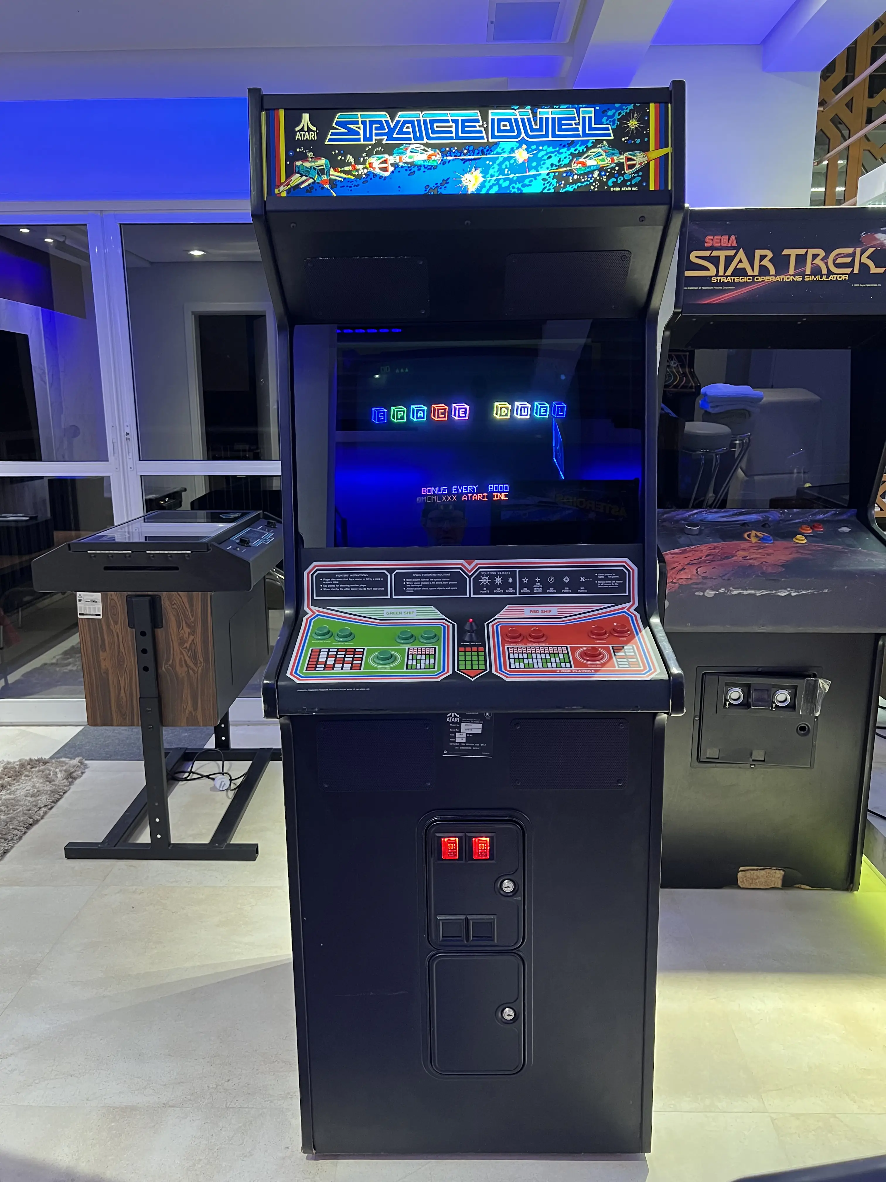 Em 1982, foi lançado o Space Duel, que hoje também faz parte da minha coleção e é conhecido como a terceira versão de Asteroids: