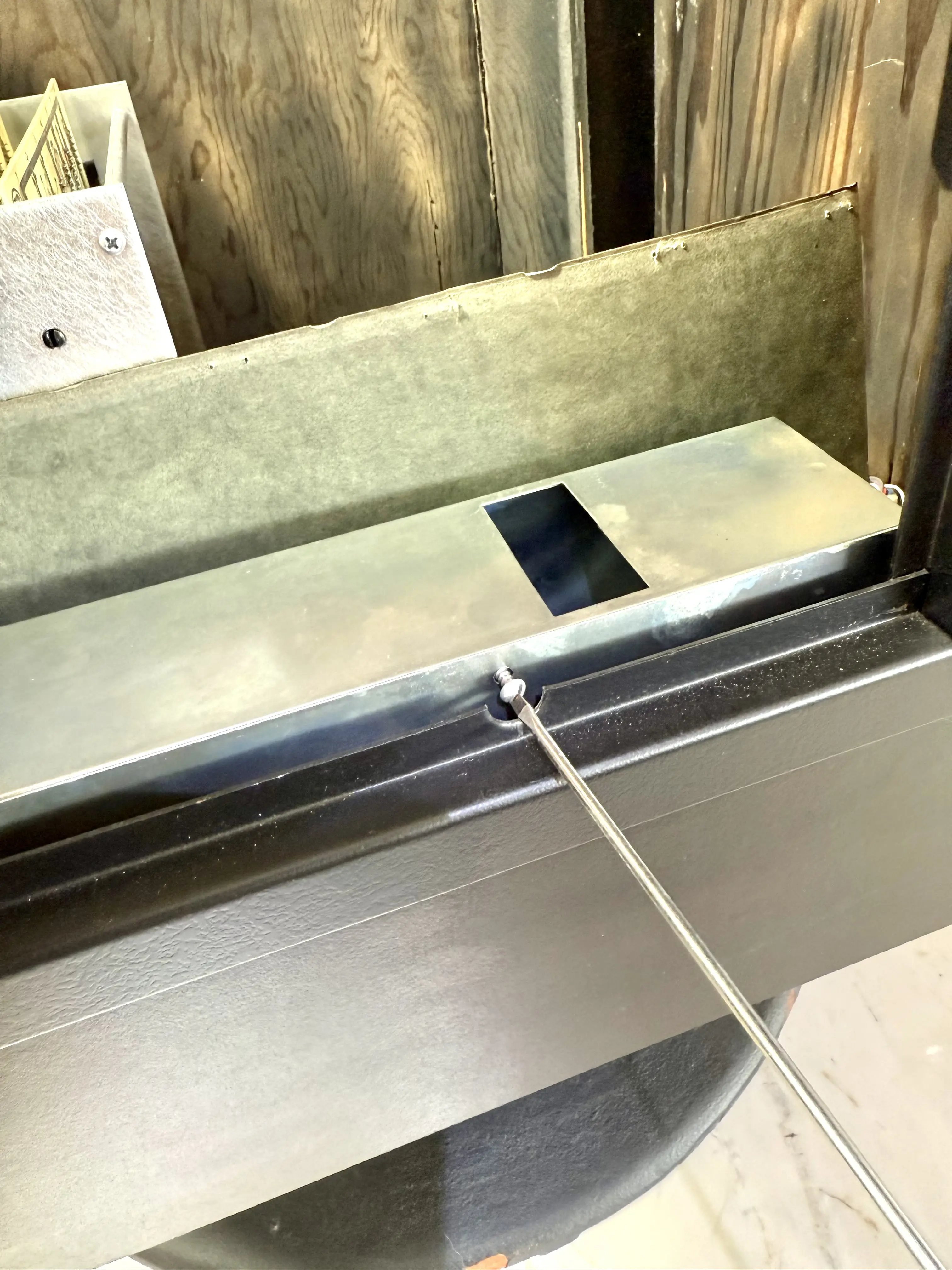 A fixação da tampa da coin box é um pouco difícil, pois o parafuso entra com dificuldade no buraco metálico, especialmente após receber uma camada extra de zinco. Se ele cai no vão entre a caixa e o gabinete, é preciso retirar a tampa e soltar os 2 parafusos inferiores, retirando a coin box e reiniciando o processo (aconteceu).