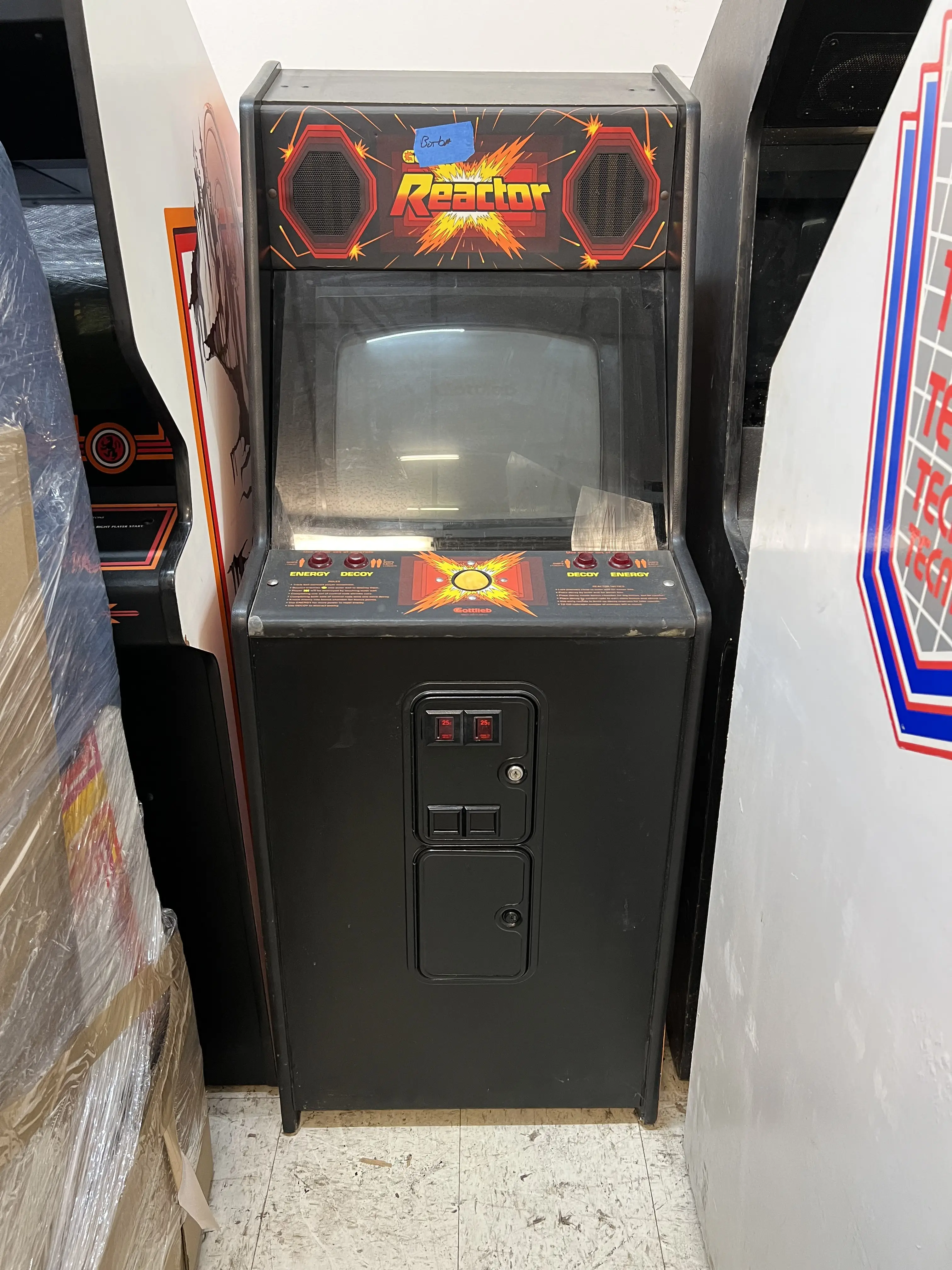 Em 2023, tive a oportunidade de viajar ao Kentucky e conferir pessoalmente alguns dos meus gabinetes de arcade que, até então, estavam armazenados no galpão de Bob. O Reactor lá se encontrava, ao lado do Warlords Upright: