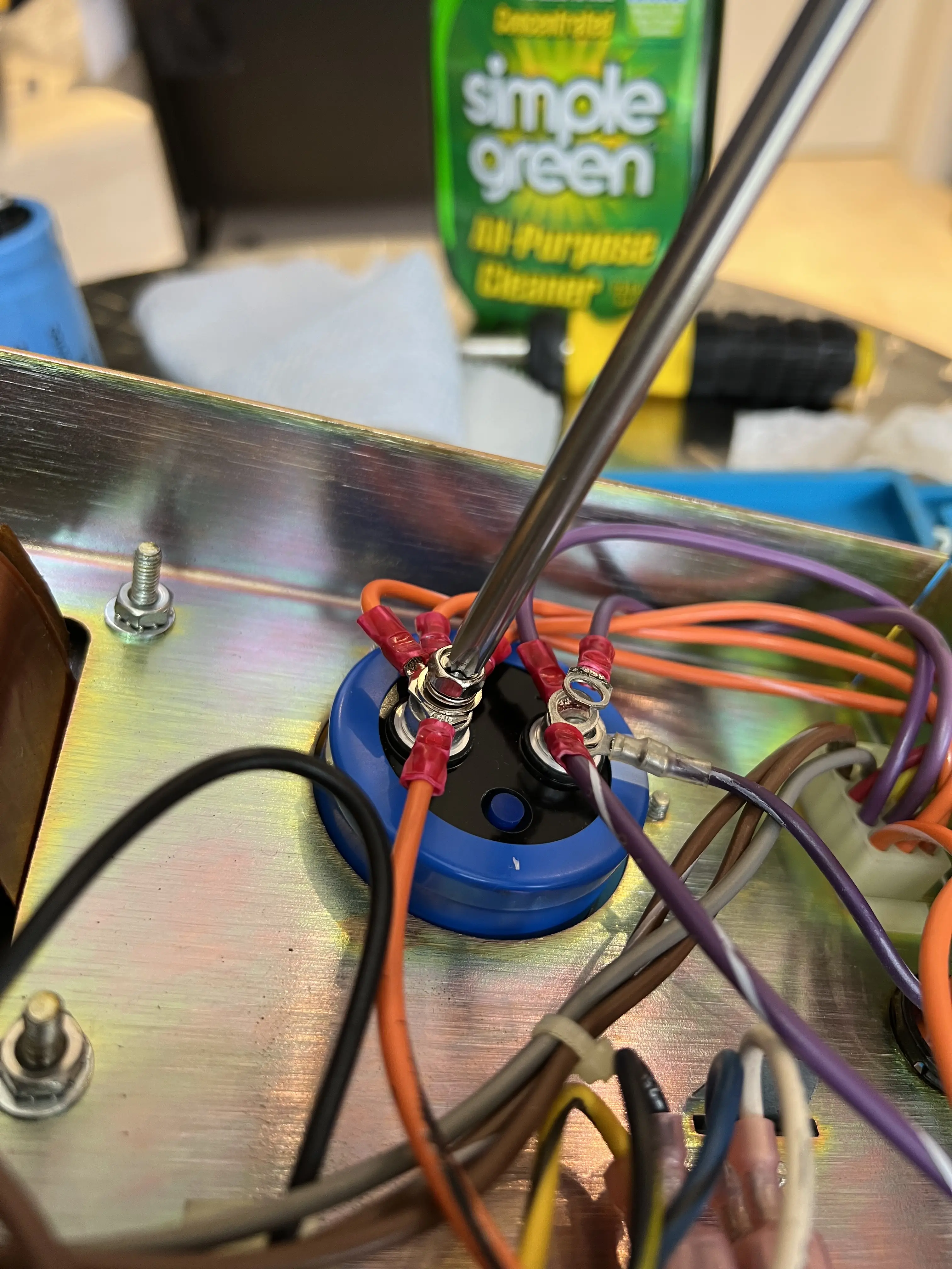 De qualquer forma, foi uma excelente oportunidade de estrear o meu conjunto de ponteiras quadradas. O bloco de transformador estava fixado sobre uma placa metálica, o que é excelente para o melhor acabamento do conjunto, mas nem sempre está presente nos arcades que tive oportunidade de restaurar.