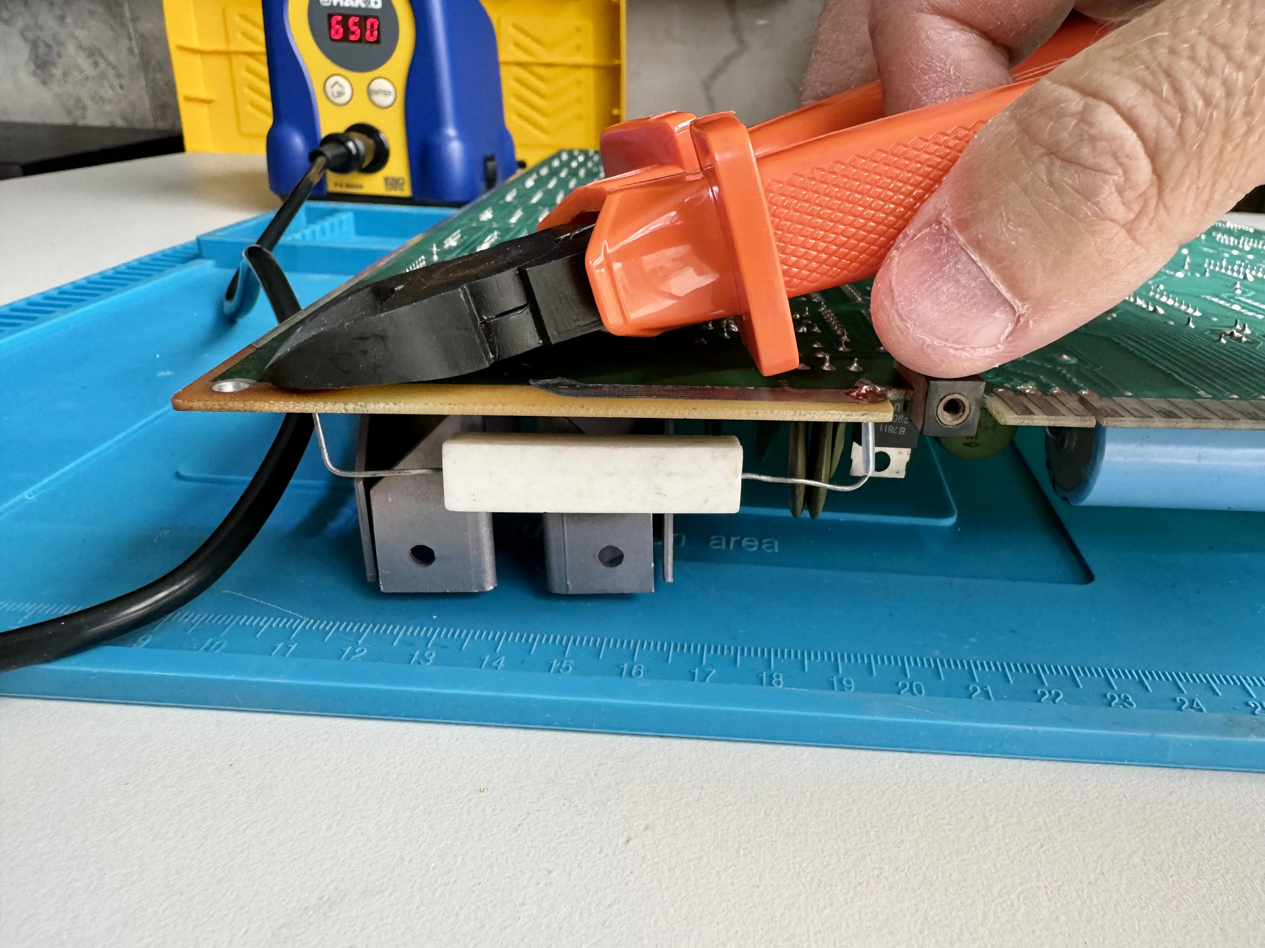 Com a parte elétrica do arcade Super Breakout, da Atari, funcionando, eu estava tranquilo para proceder à instalação da gaiola, ou cage, e da placa-mãe, ou PCB. Porém, a placa ainda necessitava de um reparo definitivo, pois eu havia improvisado uma solda em um dos braços quebrados do resistor de 4 ohms.
