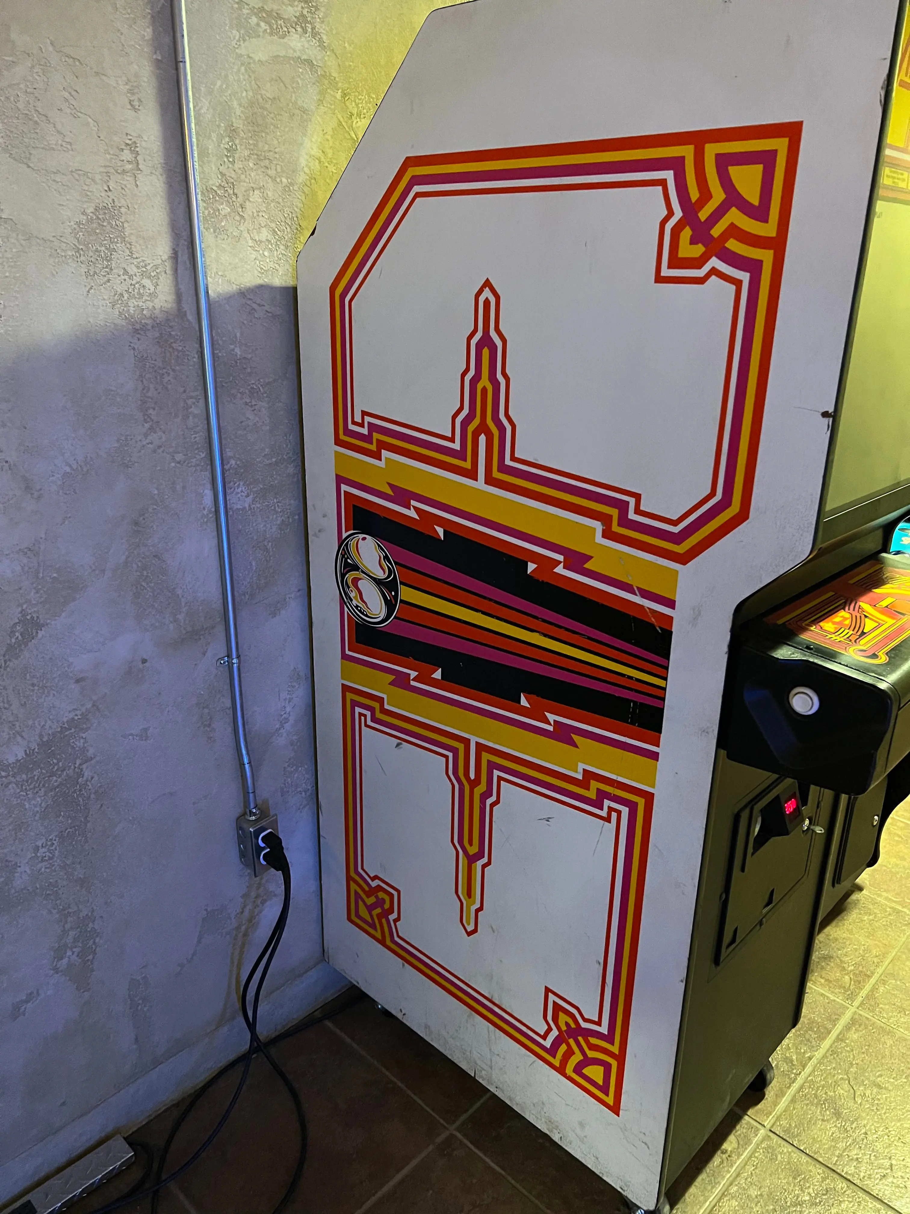 Ao negociar com o vendedor, ele explicou que esta máquina estava com uma das laterais pintadas de branco por cima da arte original, por isso ele ofereceria um desconto. Eu falei que era uma pena, mas que buscava um gabinete com a arte em bom estado. No meio dessa conversa, ele revelou que, na verdade, ainda possuía 2 gabinetes e estava reservando aquele em melhor estado de conservação para sua coleção pessoal.