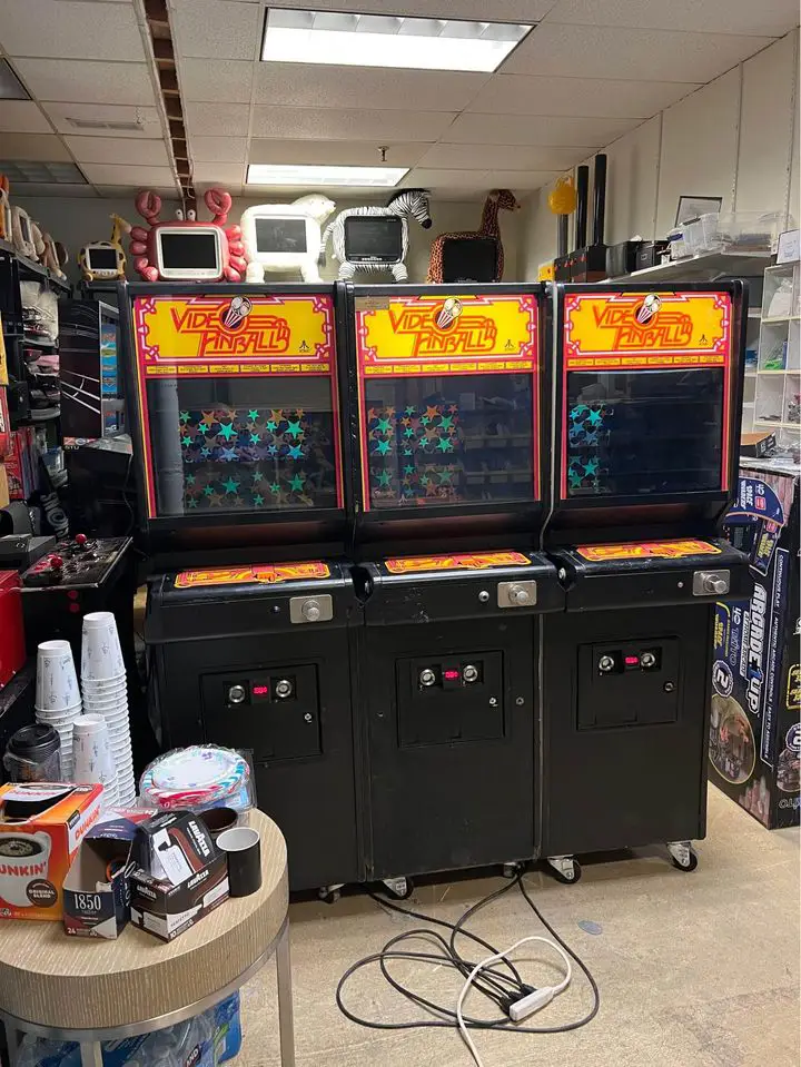 Um ano depois, me deparei com um anúncio do colecionador Brian Nalley, que mostrava uma foto com 3 máquinas de Video Pinball, dizendo que apenas a última delas estava disponível para venda. A imagem é impressionante: