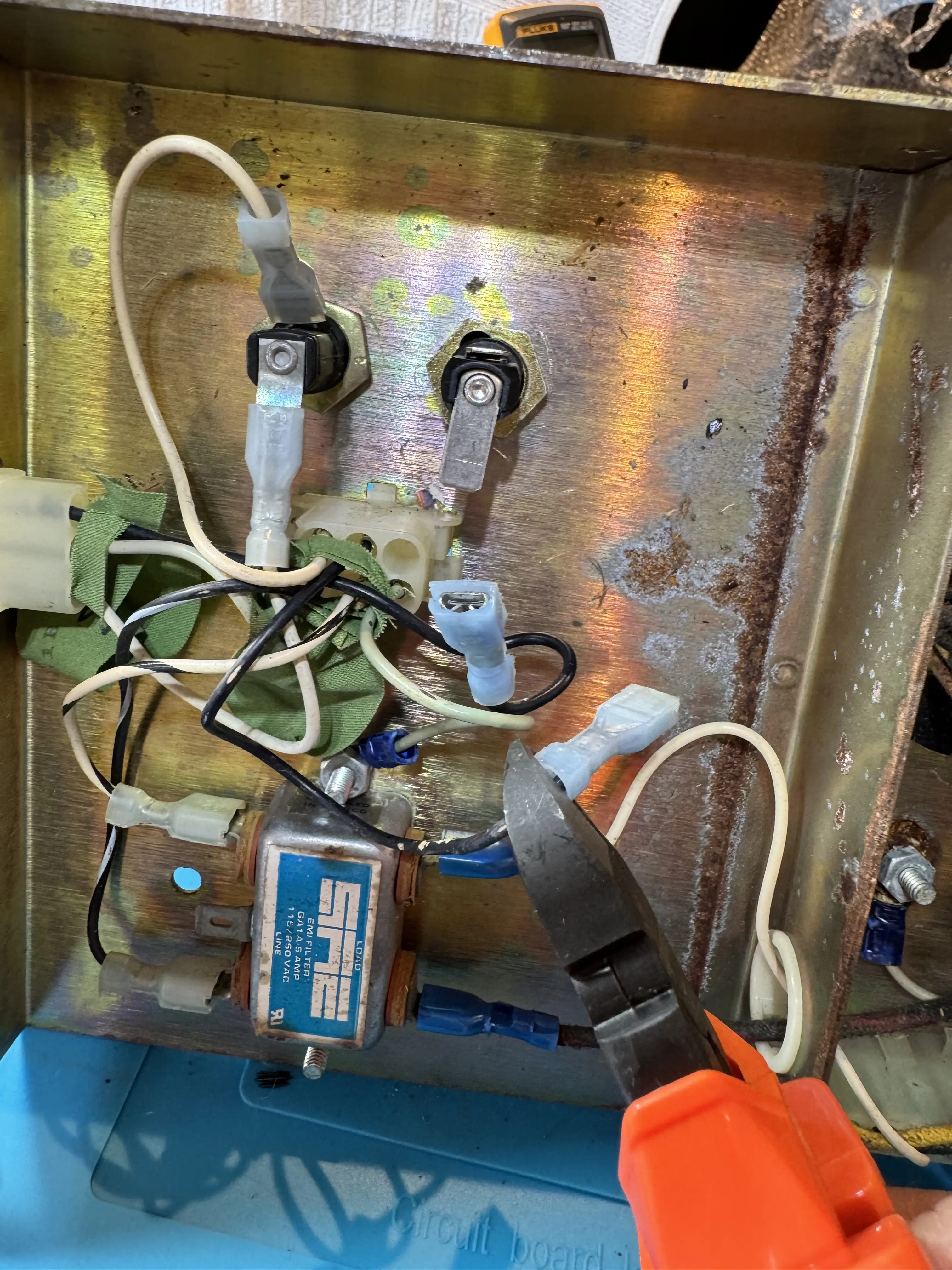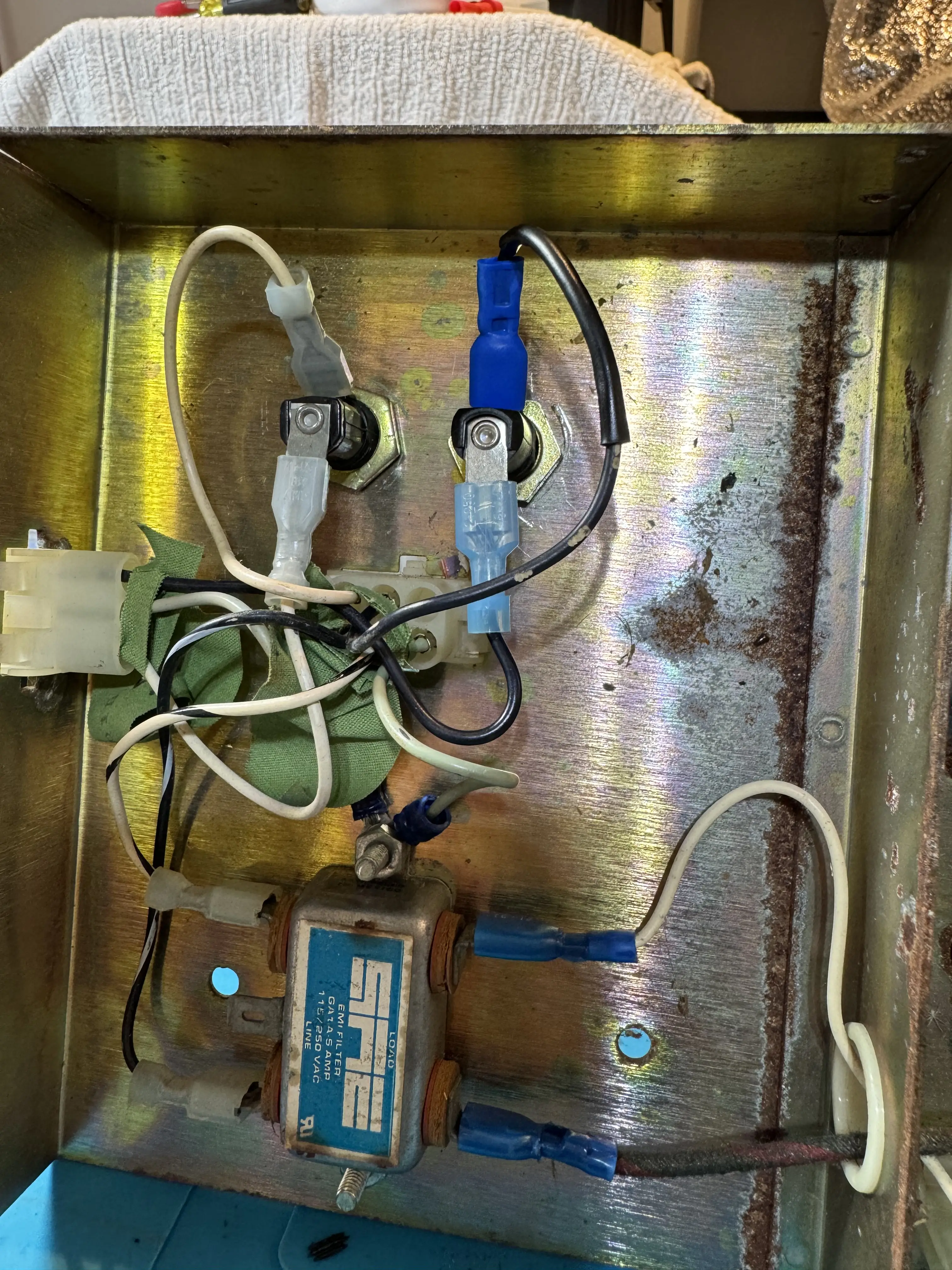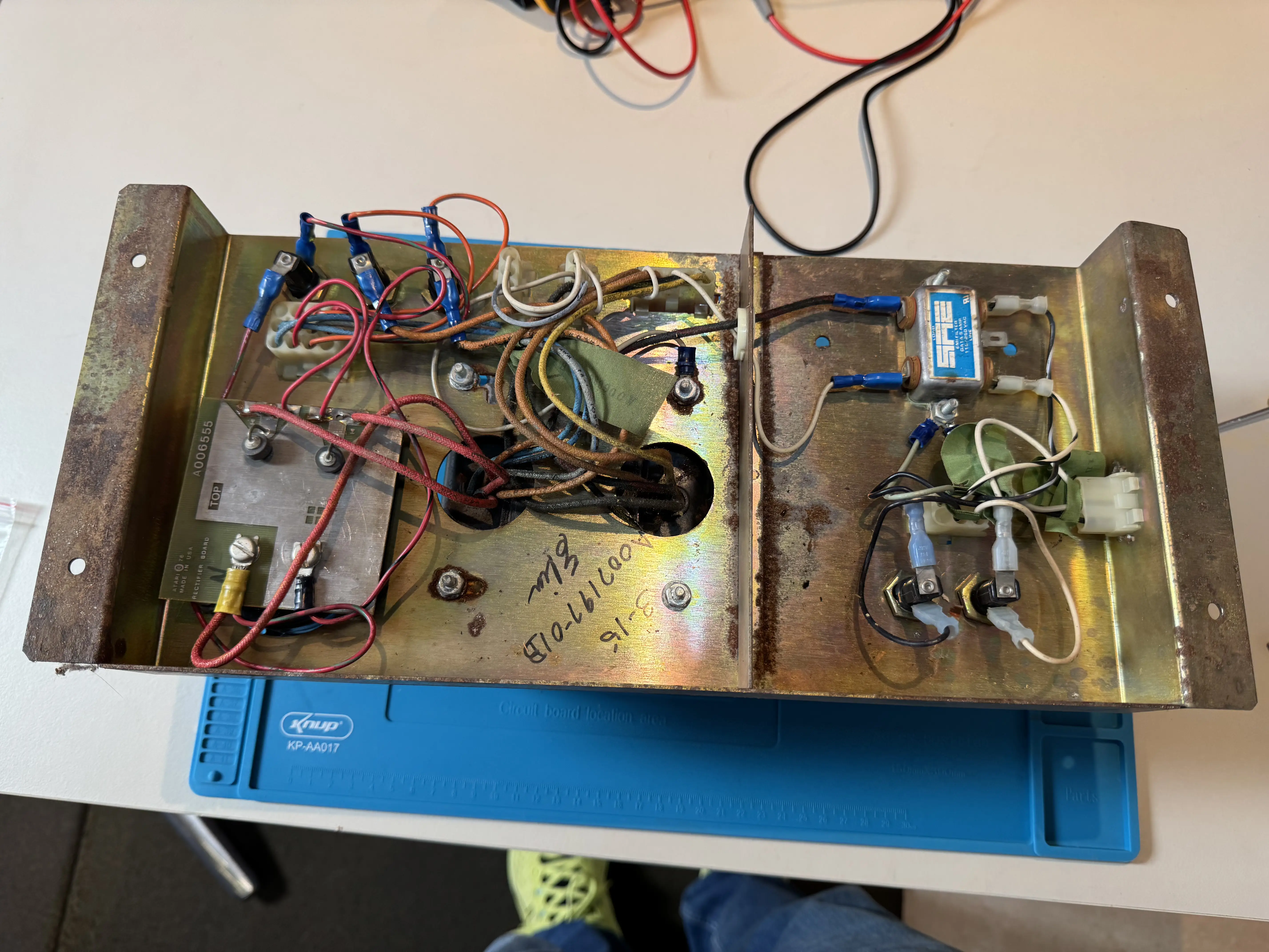 Após realizar a inspeção do gabinete de arcade Video Pinball, da Atari, e perceber que havia um porta-fusível quebrado, o próximo passo foi retirar o conjunto de força do gabinete e colocá-lo na bancada para uma inspeção cuidadosa. A forte presença de oxidação já indicava que este gabinete havia sido exposto à umidade: