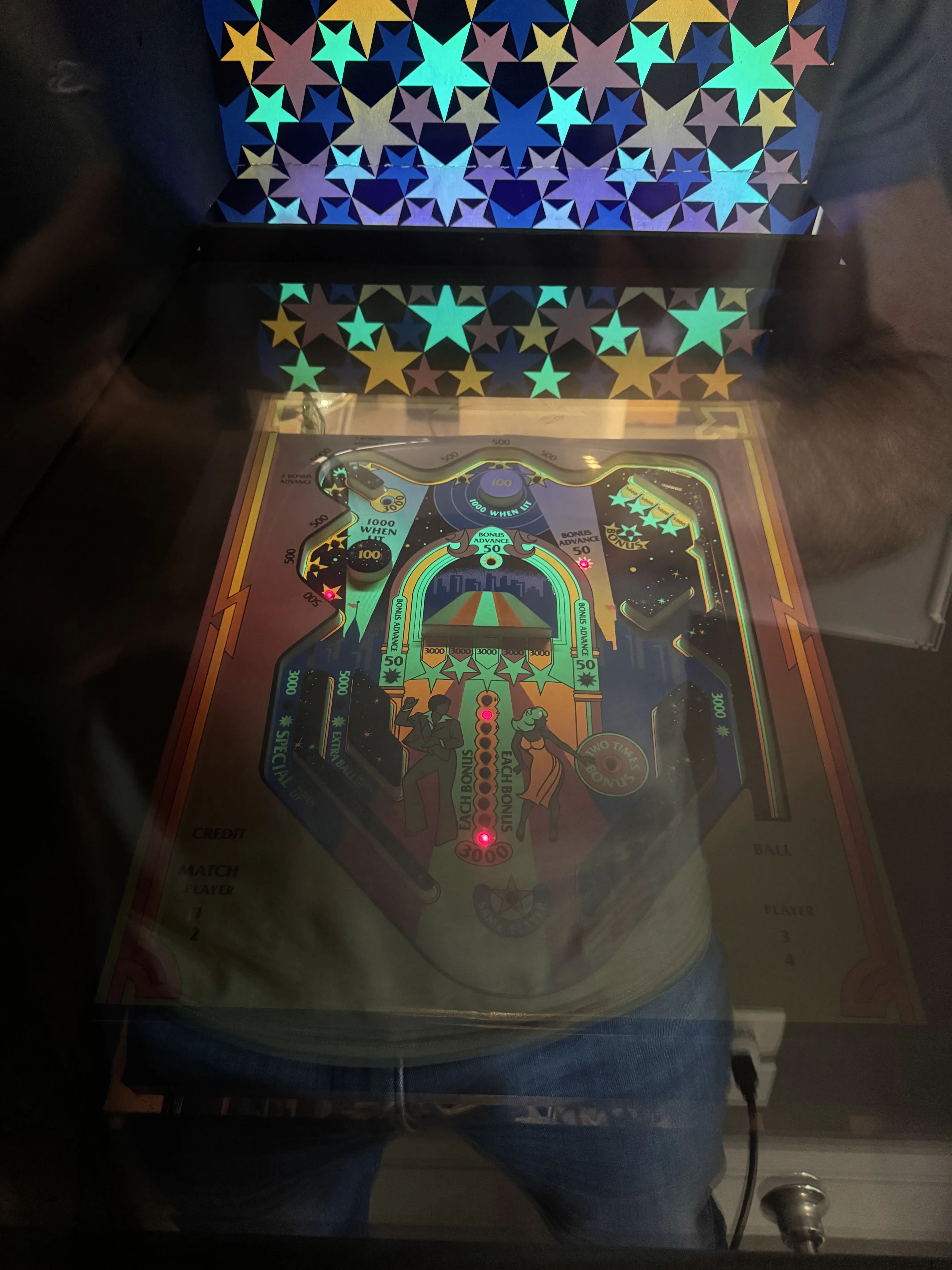 Resolvida a questão da energia, eis o primeiro teste do Video Pinball, arcade da Atari: