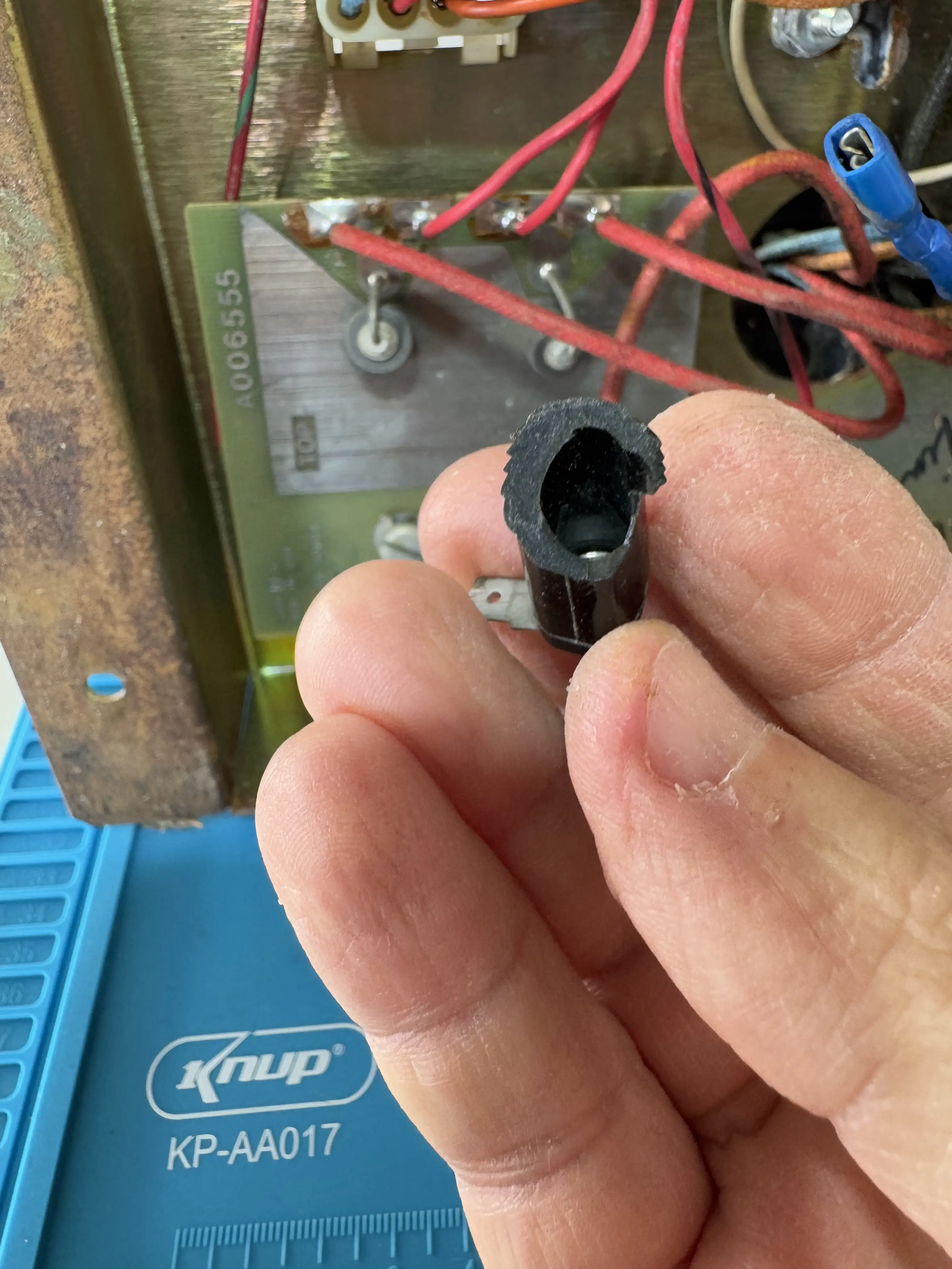 Os porta-fusíveis de chassis fabricados recentemente possuem a aba metálica mais larga, enquanto os antigos afunilam para encaixar em conectores de menor tamanho. A parte mais demorada da troca do porta-fusível é crimpar os cabos com novos conectores fêmea para o perfeito encaixe nas novas abas. De qualquer forma, este seria um conserto temporário para testar a máquina. Posteriormente, durante o processo de restauração do arcade, é recomendado trocar todos os porta-fusíveis.