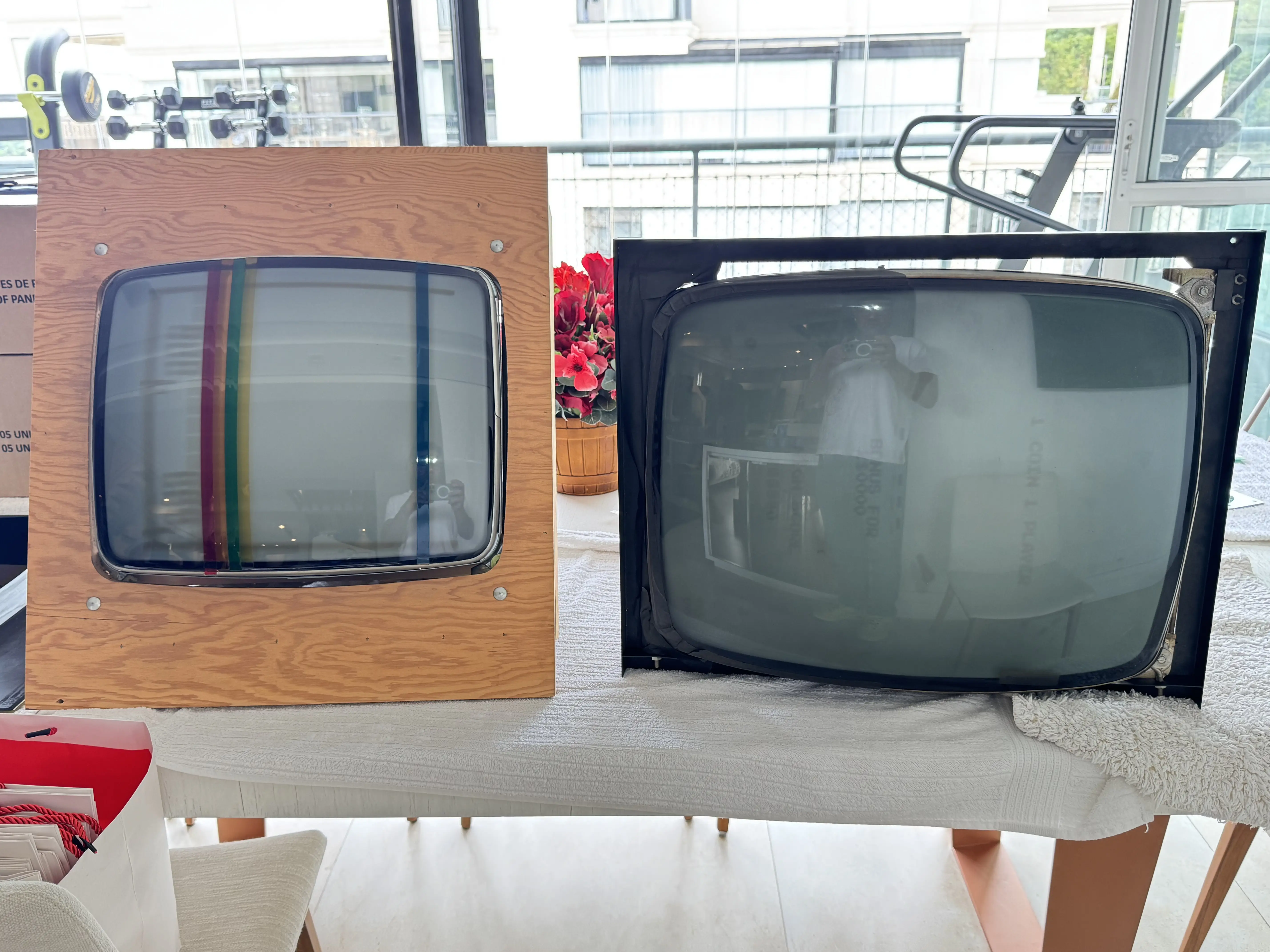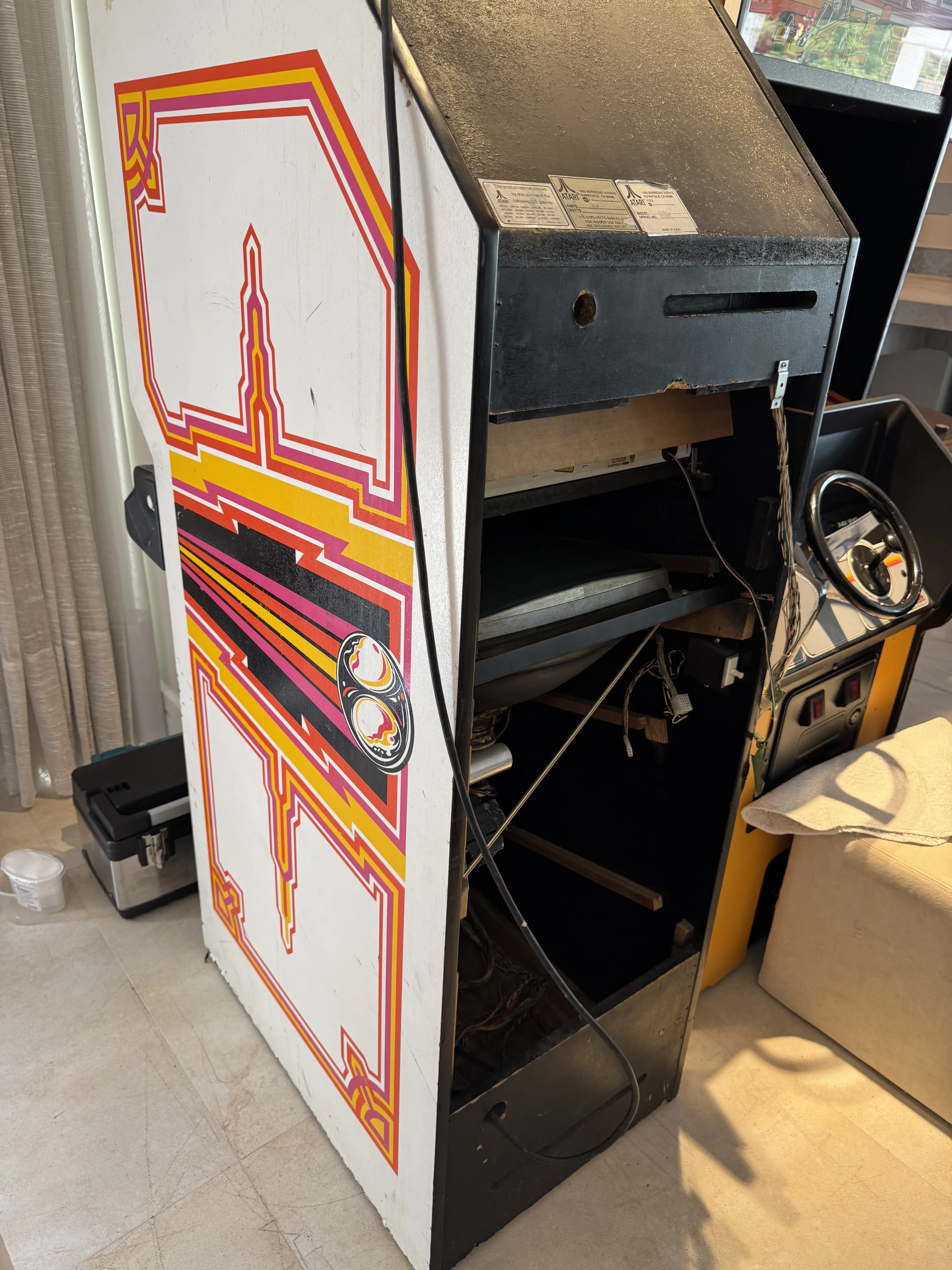 Este monitor, de tamanho brutal em comparação ao do Breakout – na foto seguinte colocados lado a lado –, veio a se tornar o meu preferido. É impressionante a diferença que 4 polegadas na diagonal representam para o campo de jogo, e somente pessoalmente percebemos isso. O Video Pinball foi meu segundo arcade game com este monitor, sendo o primeiro o Warlords em sua versão Upright.