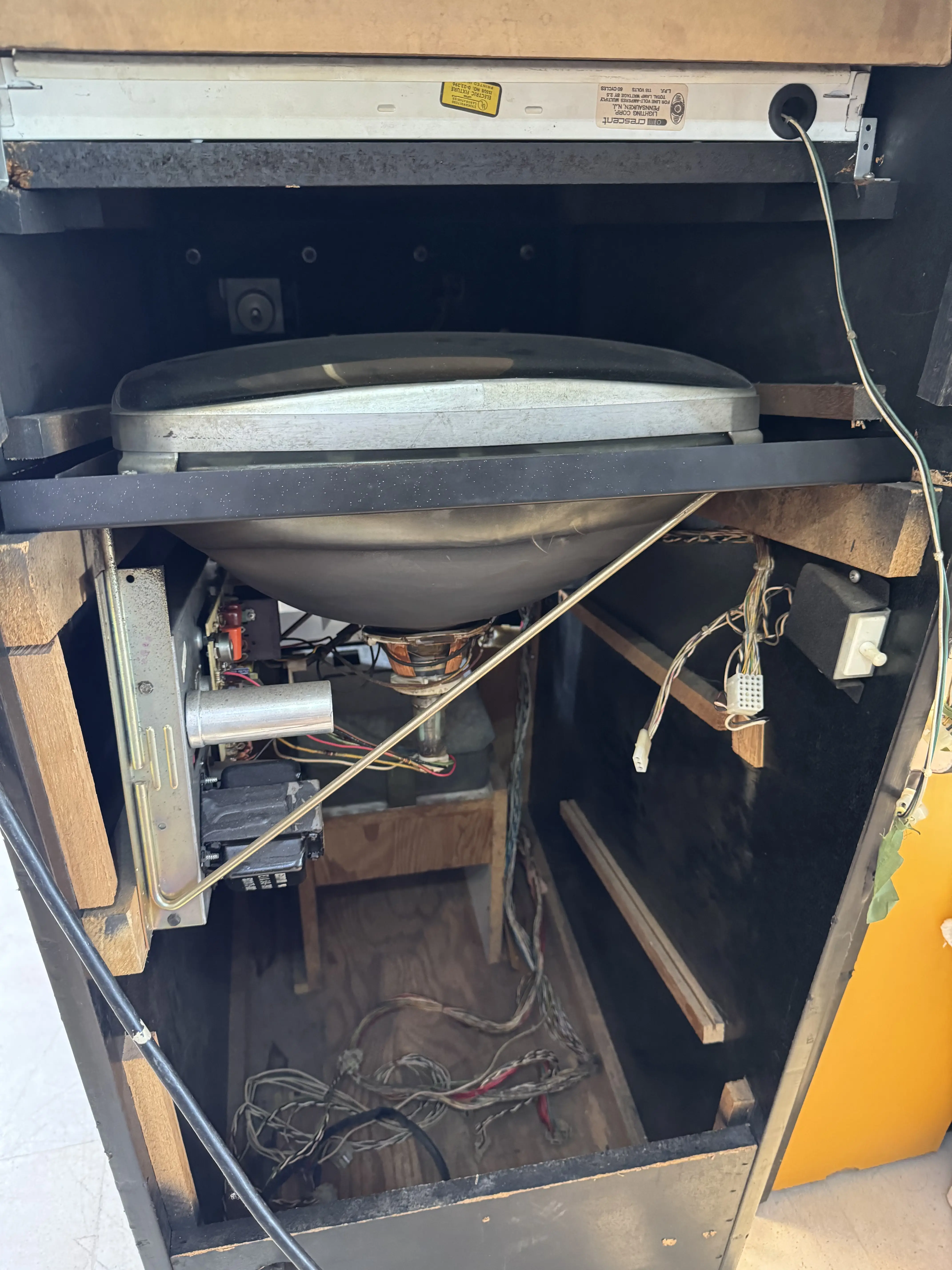Resolvi retirar primeiro o monitor de dentro do gabinete do Video Pinball, acessando-o por trás: