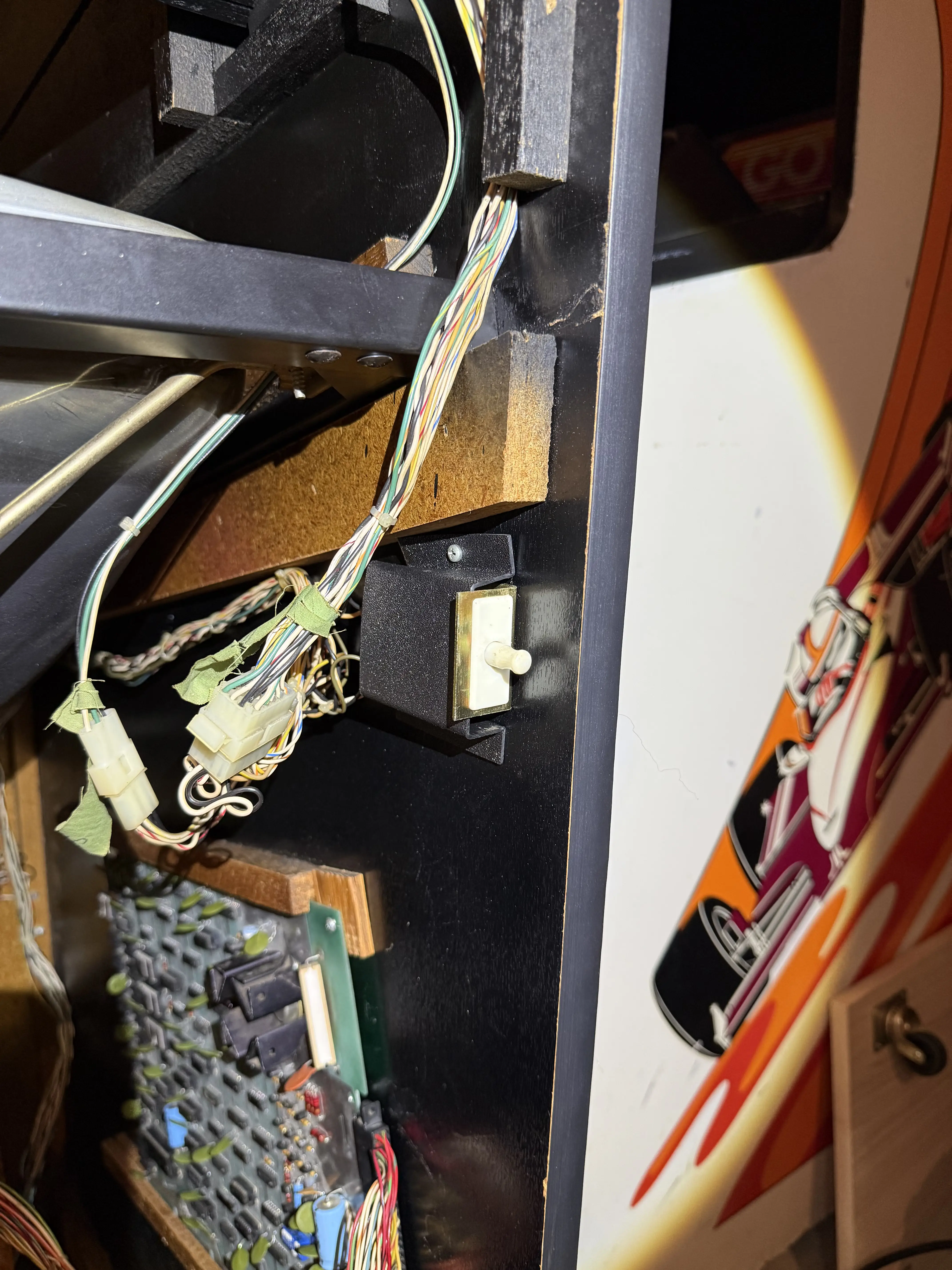 Um acabamento que deixei para o final, após testar bem todos os componentes, foi a colocação dos acabamentos plásticos que servem de “capa” para os interlock switches – um deles fica na back door, e outro, na coin door.