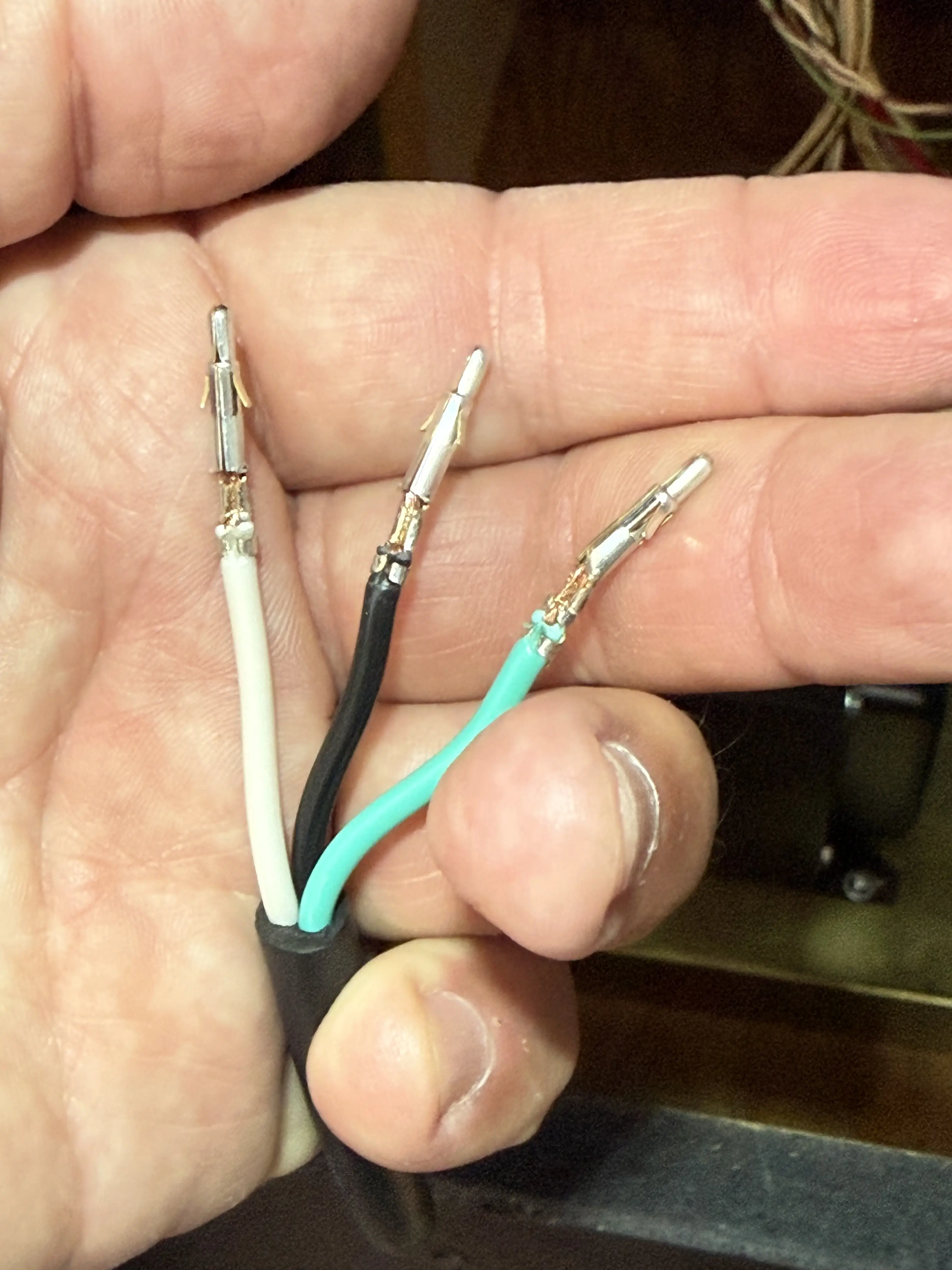 Por fim, o power cord ficou exatamente como o original, com pinos devidamente crimpados em um novo conector.